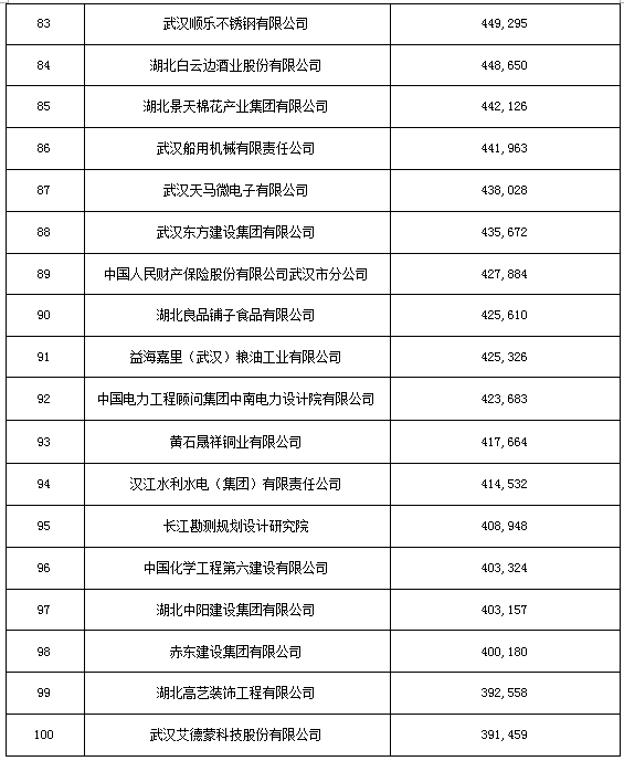 2017年7月6日,湖北省企业联合会、湖北省企业家协会发布了2017湖北企业100强。这也是湖北省企业联合会、湖北省企业家协会连续第9年向社会发布湖北企业百强排序榜。